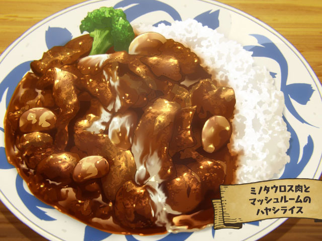 第2期 23話「ミノタウロス肉とマッシュルームのハヤシライス」を作ってみました。