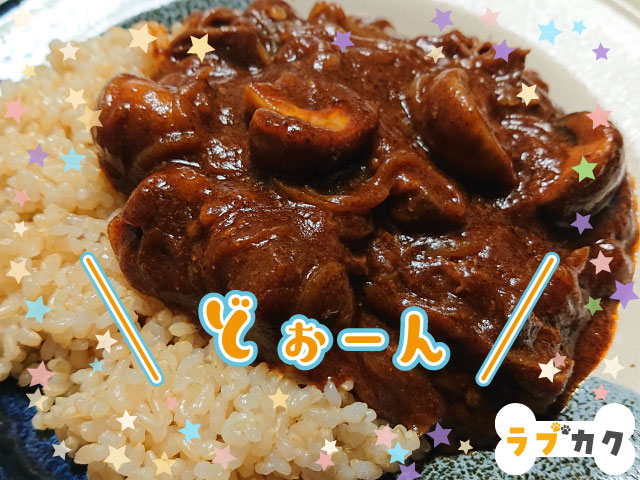 完成!ミノタウロス肉ならぬ牛肉とマッシュルームのハヤシライス!