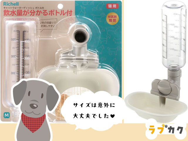 これも実はS(110ml)、M(160ml)の2サイズ展開(カッコ内の水量はお皿の規定水線までの貯水量)で、大型犬用ではないどころか中型犬も怪しい。
